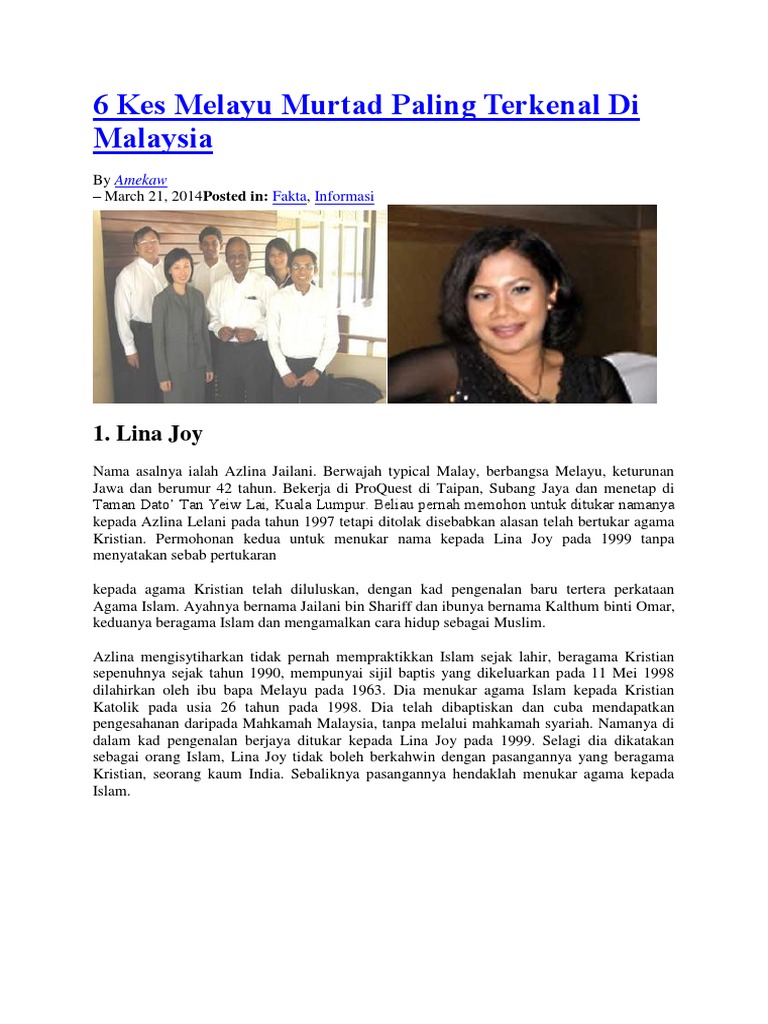 6 Kes Melayu Murtad Paling Terkenal Di Malaysia Pdf